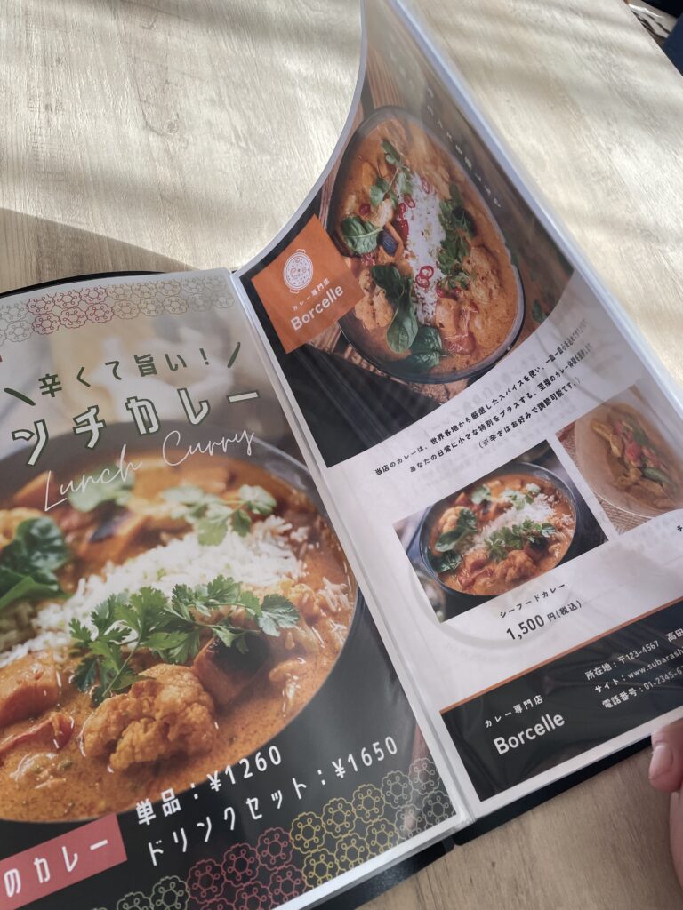 • 耐久性を考え、ラミネート加工や専用のメニューブックケースを使うと長持ちします。