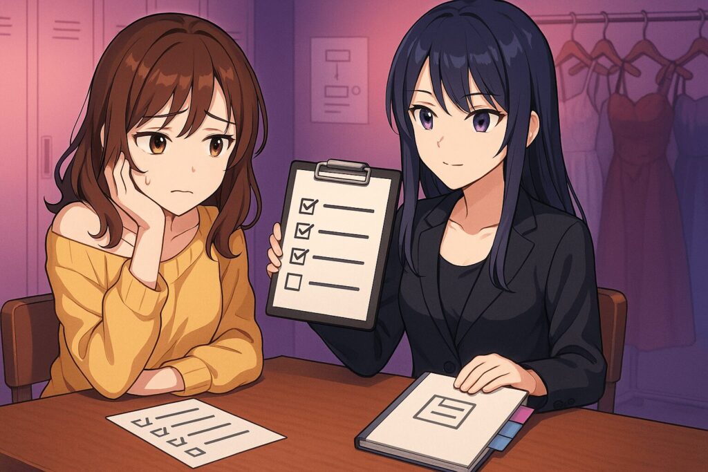 • 笑顔とアイコンタクト:自然な笑顔は武器。照れが強ければ“癒し系”として育成。