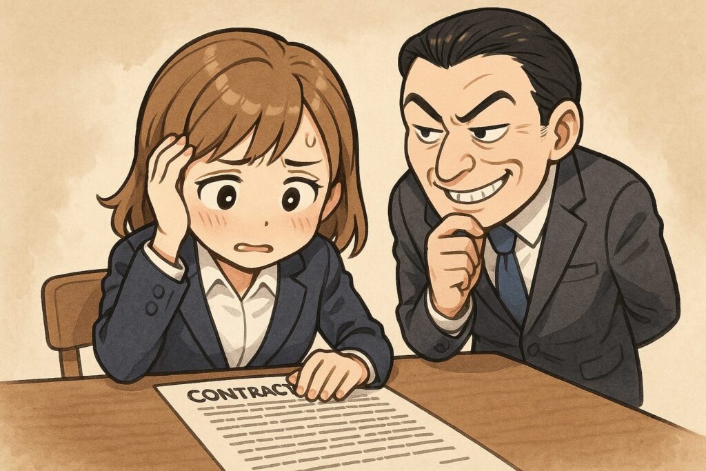 | サインを急かされる | 内容を理解しないまま押印 | 一晩置いて冷静に読み返す習慣をつける |