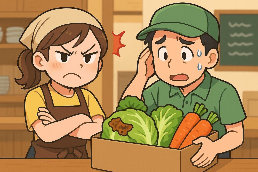 | 不完全履行 | 内容が不十分だった | 注文数よりも少ない食材が届いた |