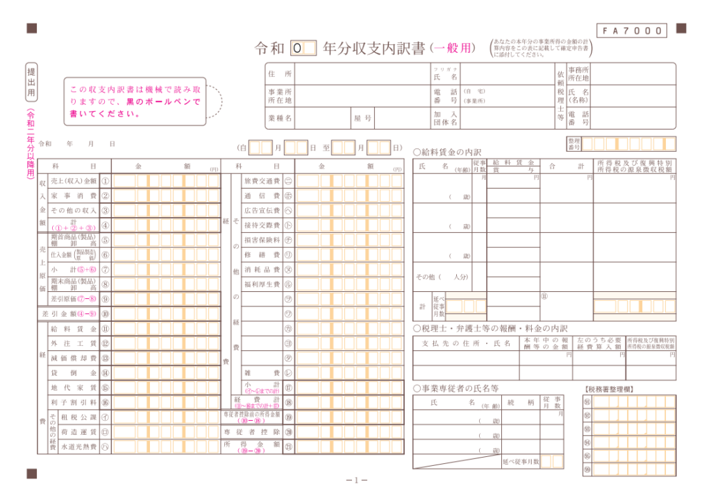 その前に作るのが、白色申告の成績表である収支内訳書です。