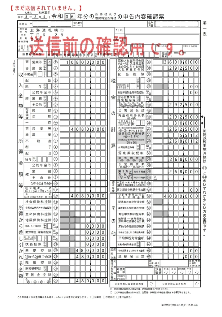| 最終提出 | 確定申告書B | 税金の計算結果を書く |